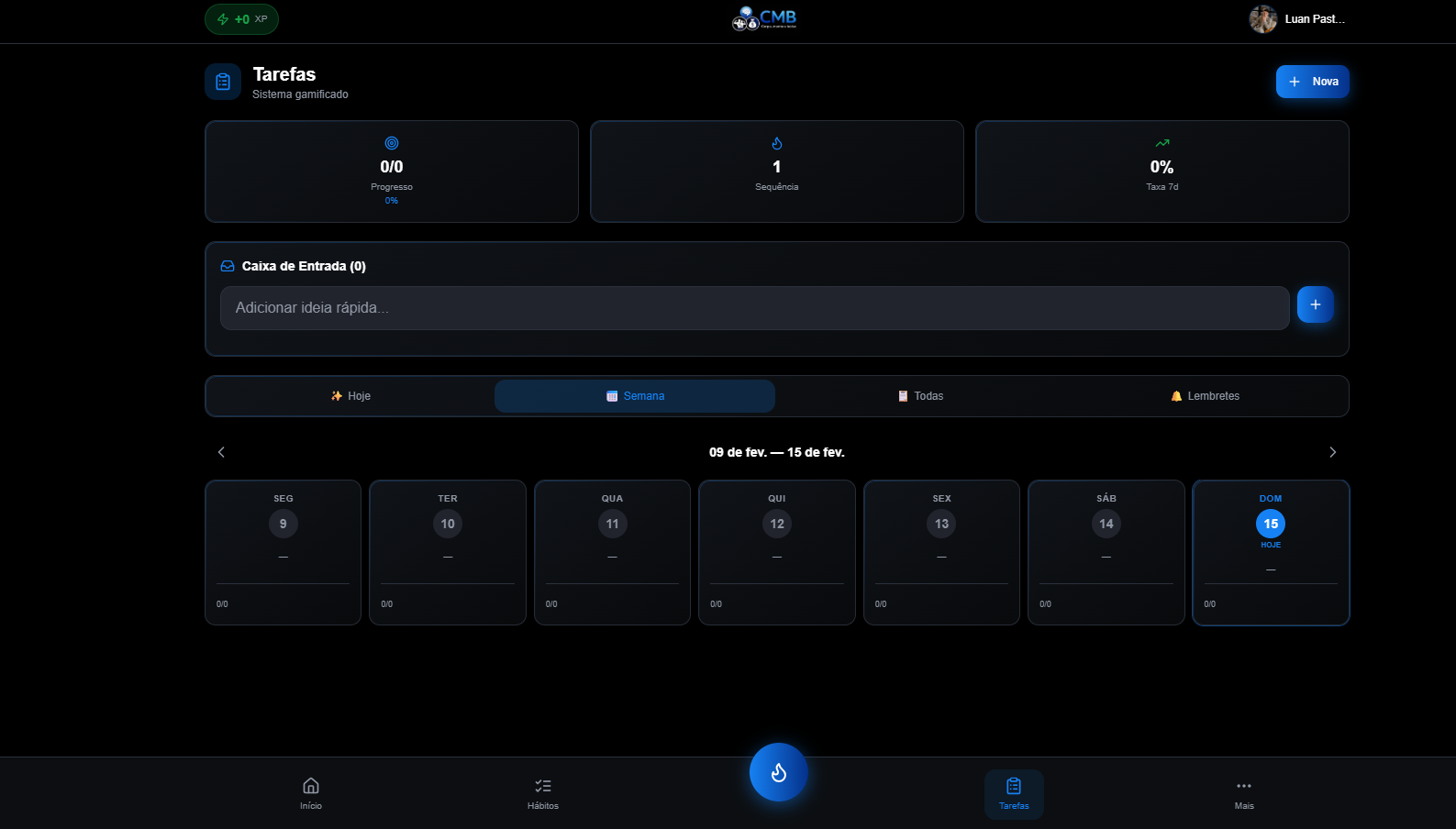 O CMB cria tarefas, hábitos e metas automaticamente.